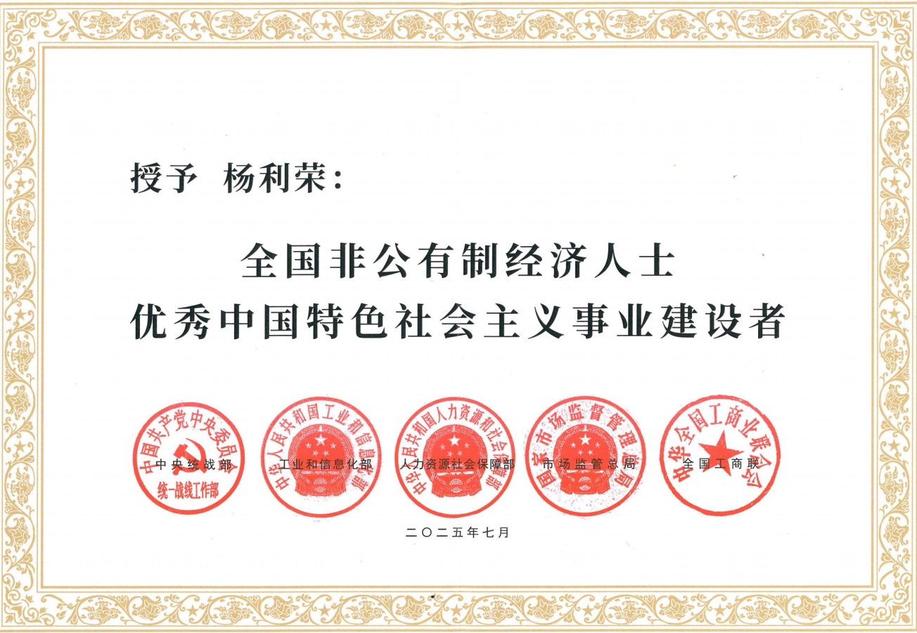 云南祥豐實(shí)業(yè)集團(tuán)董事長(zhǎng)楊利榮榮獲“第六屆全國(guó)非公有制經(jīng)濟(jì)人士?jī)?yōu)秀中國(guó)特色社會(huì)主義事業(yè)建設(shè)者”稱(chēng)號(hào)