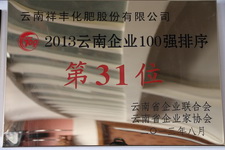 2013云南省企業(yè)100強(qiáng)排序第31位