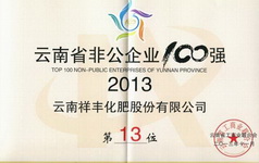 云南省非公企業(yè)100強(qiáng)第13名