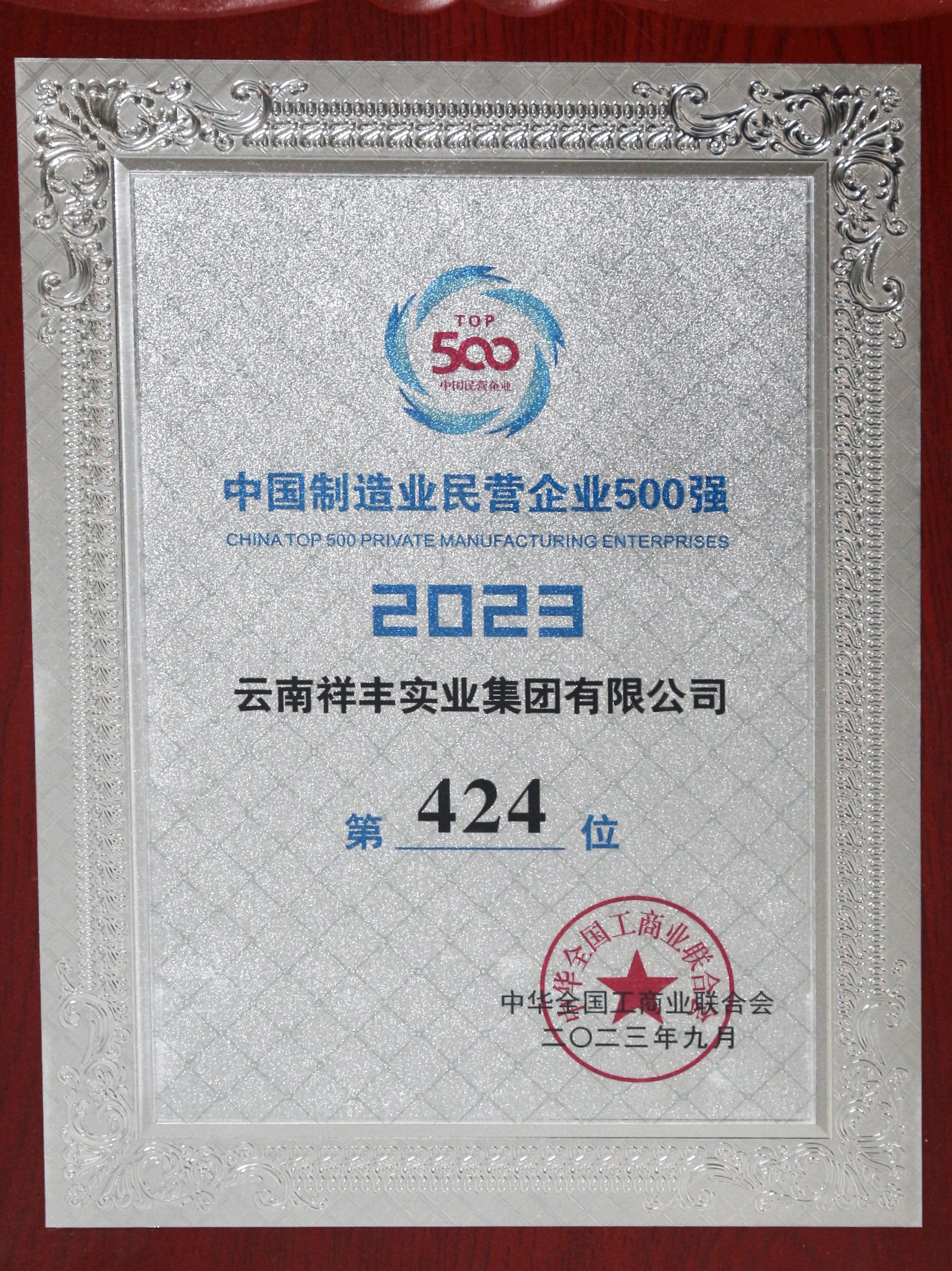 2023中國制造業(yè)民營企業(yè)500強(qiáng),位列第424