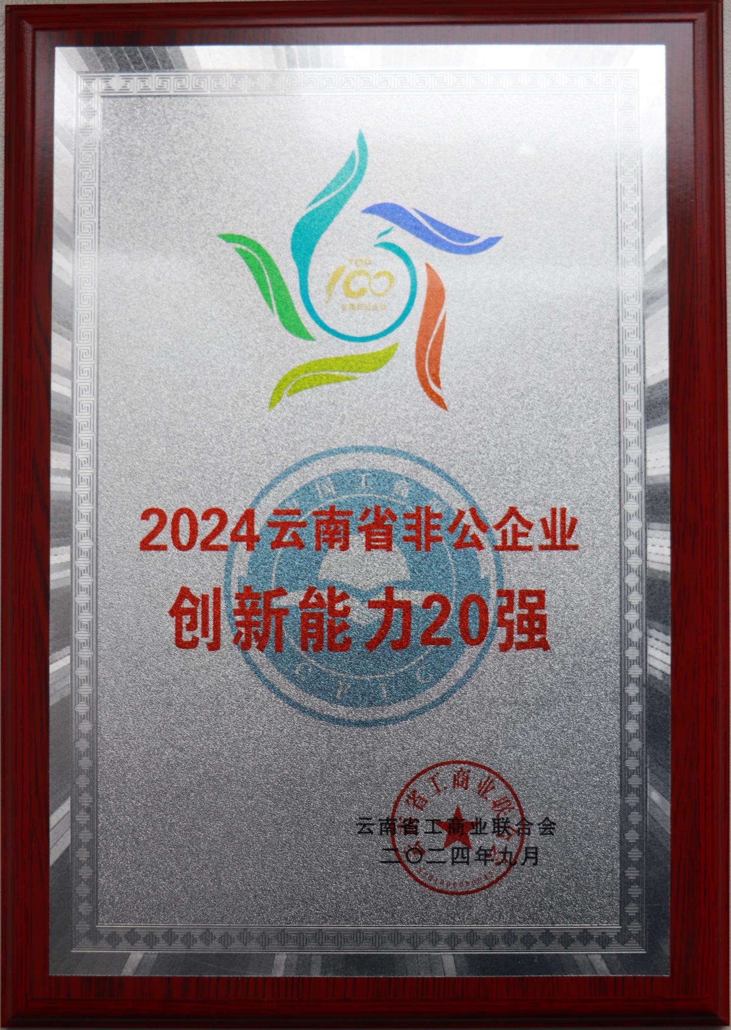 2024云南省非公企業(yè)創(chuàng)新能力20強(qiáng)