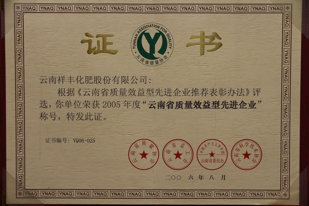 云南省質(zhì)量效益先進(jìn)企業(yè)