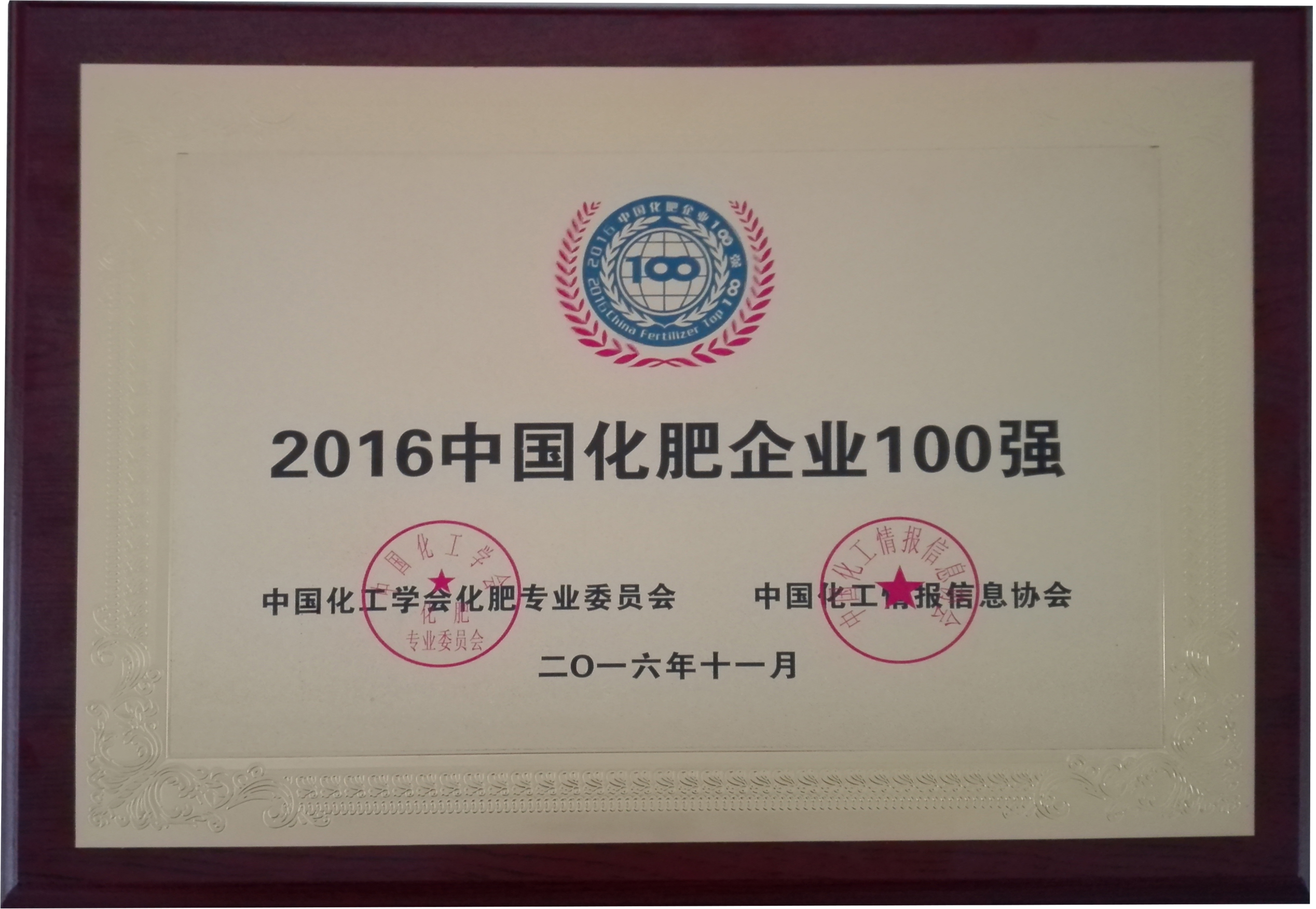 中國(guó)化肥企業(yè)100強(qiáng)(證書(shū))